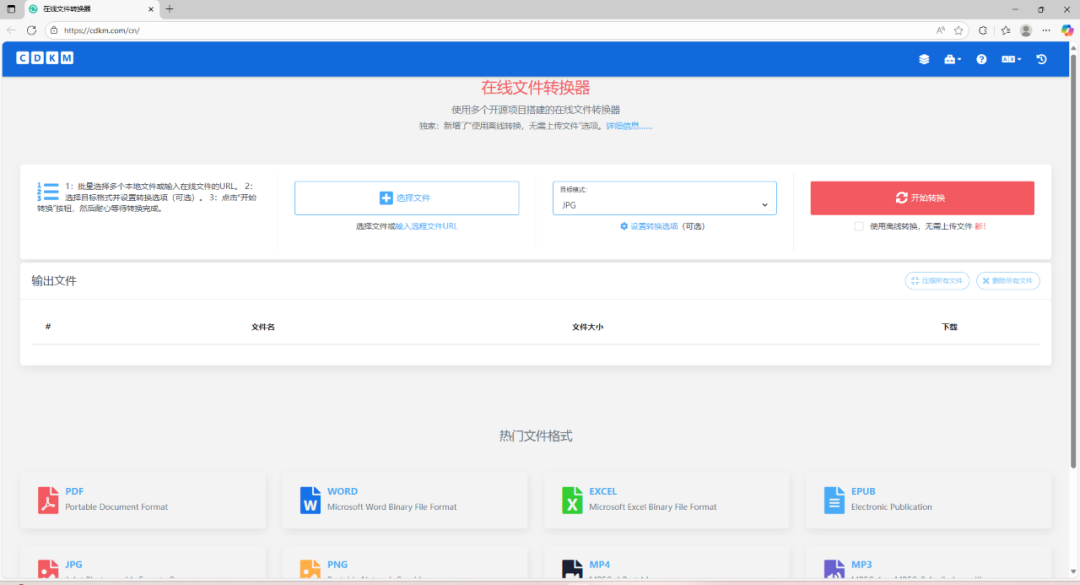 你能想到的几乎全都支持,而且操作特别简单,文件拖进去选择目标格式,点击开始转换,几秒钟就能搞定,生成的文件可以直接打包下载,所有文件信息服务器也都会在2小时后自动删除,完全不留痕迹,隐私安全性拉满,它还支持离线转换模式