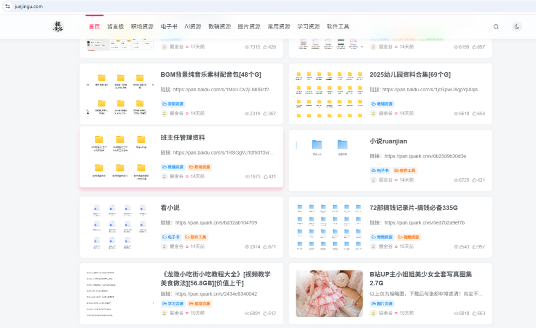 这个网站,简直是“万能小卖部”,啥都有:影视、壁纸、自媒体软件工具、小吃配方、中小学幼教资料、考公考编课程,甚至还有车载U盘和短剧素材……市面上的资料基本都有,需要什么资料还可以留言,站长会及时更新,重点是,全都能白嫖。